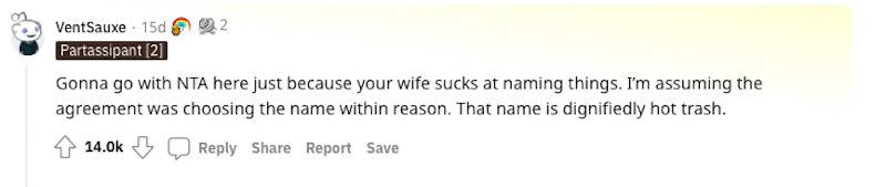 However, not all support was for the husband. Many users said that while the wife is at fault for letting the situation escalate, so is the husband for going back on his initial promise. They add that the couple should’ve added a veto clause in the event one partner truly loathed a name suggestion.