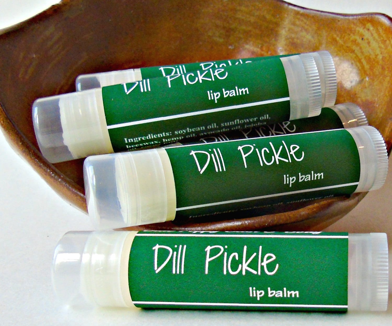 The new lip balm is formulated to taste just like dill pickles, and it comes from BluePoppyBath, a seller on Etsy. Aside from the bizarre scent and flavor, the lip balm is similar to other natural lip balms. It comes in a push tube and contains nourishing and moisturizing ingredients such as cocoa butter, shea butter and vitamin E.