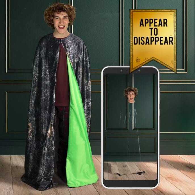 The toy group Wow! Stuff developed the Invisibility Cloak. It works like a green screen so that the wearer disappears in photos and videos taken with an iOS or Android app.