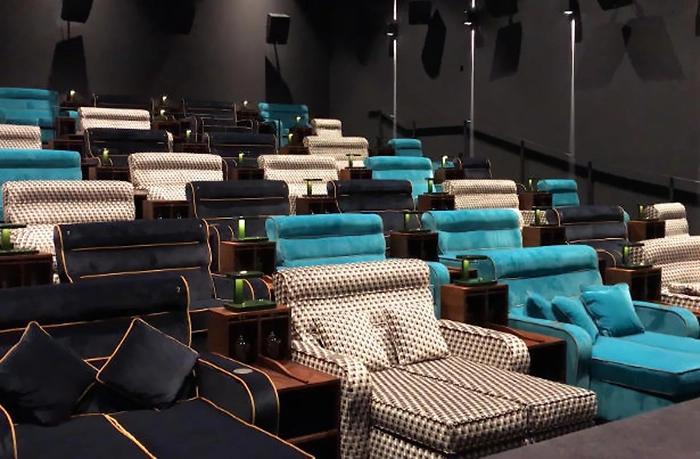 Alternatively, there’s another theater in the same building that features double sofas instead of beds. These old-school-looking sofas come with couch pillows, and they’re big enough for two people to recline on.