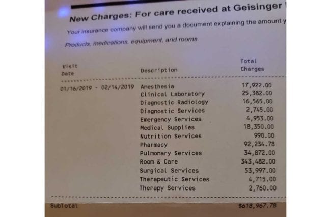 But the ridiculous prices don’t end there. Anesthesia adds up to almost $18,000, lab work is over $25,000, and medication is over $92,000. There are also sky-high costs for lab services, medical supplies, surgery, and even food.