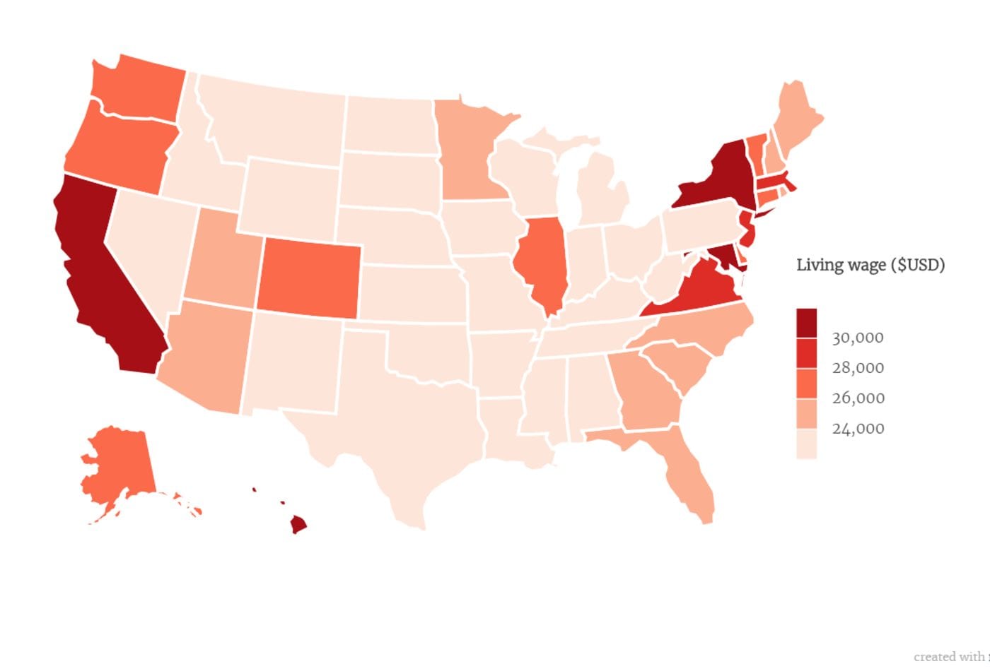 There’s now a map that shows how much you need to earn to survive in every U.S. state, and it’s quite enlightening!