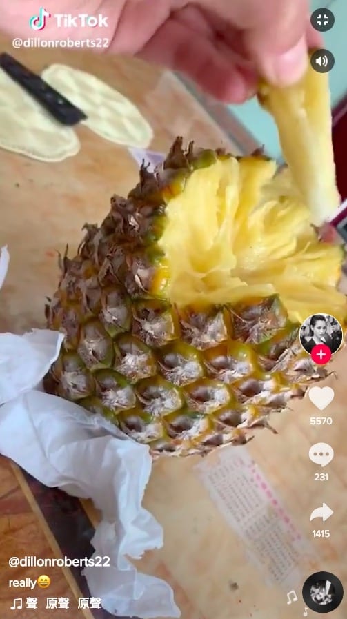 This pineapple hack comes to the world courtesy of a TikTok user. @dillonroberts22 posted a video that shows someone ripping off individual pieces of pineapple and (really loudly) chomping on them. It’s about 2 seconds long, and those 2 seconds basically changed the world.